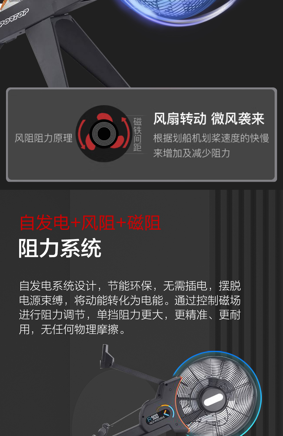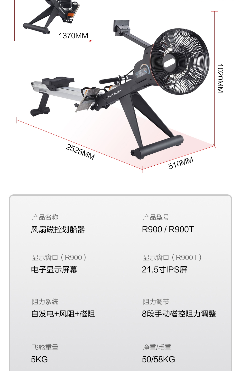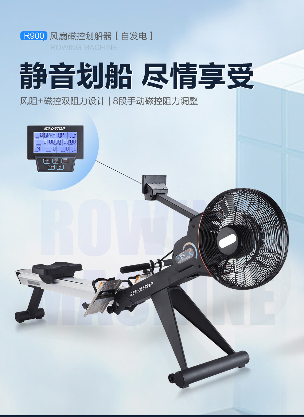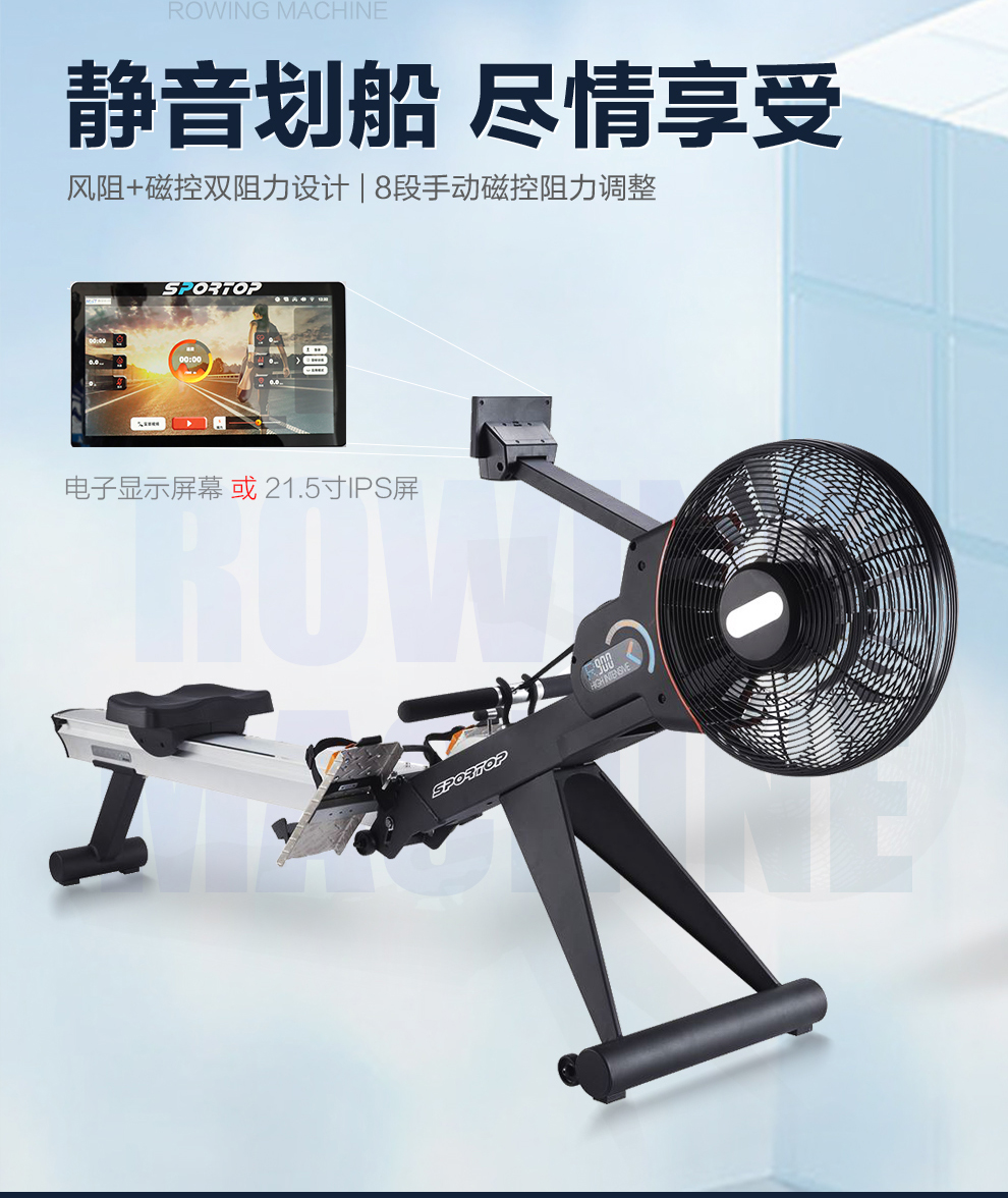 3044am永利商用智能划船机R900T彩屏磁控风阻双功能健身房专用彩屏划船机