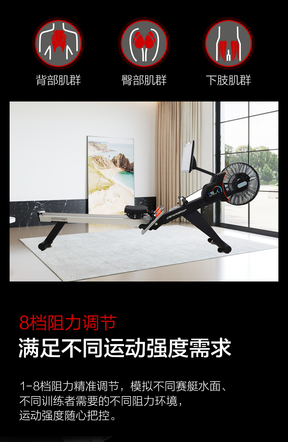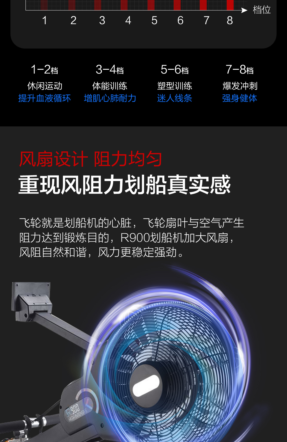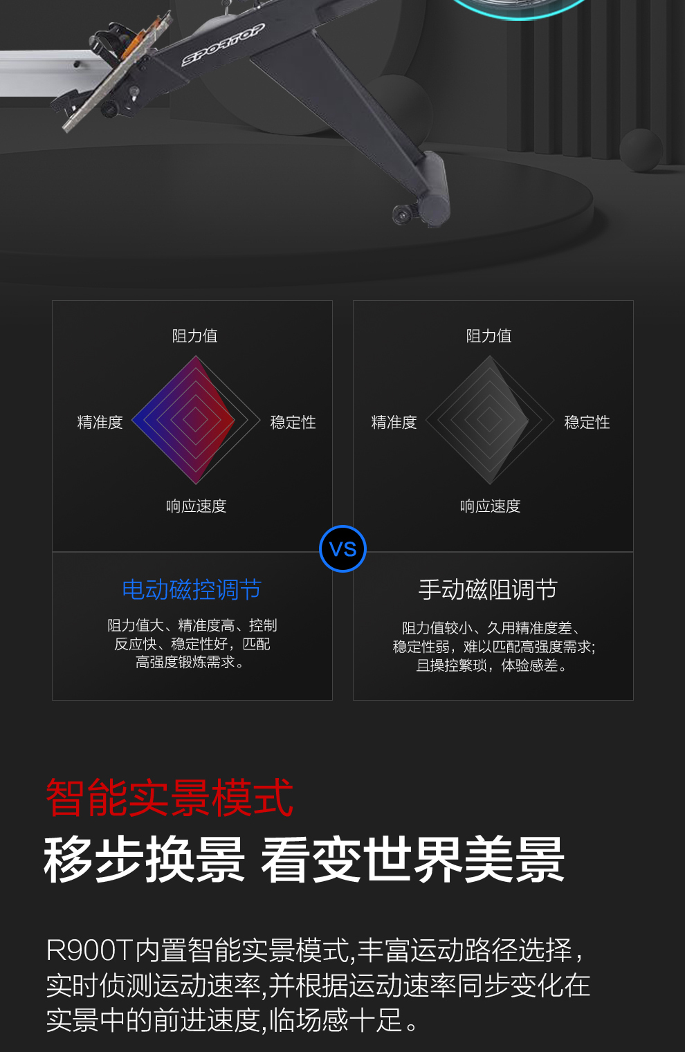 3044am永利商用智能划船机R900T彩屏磁控风阻双功能健身房专用彩屏划船机