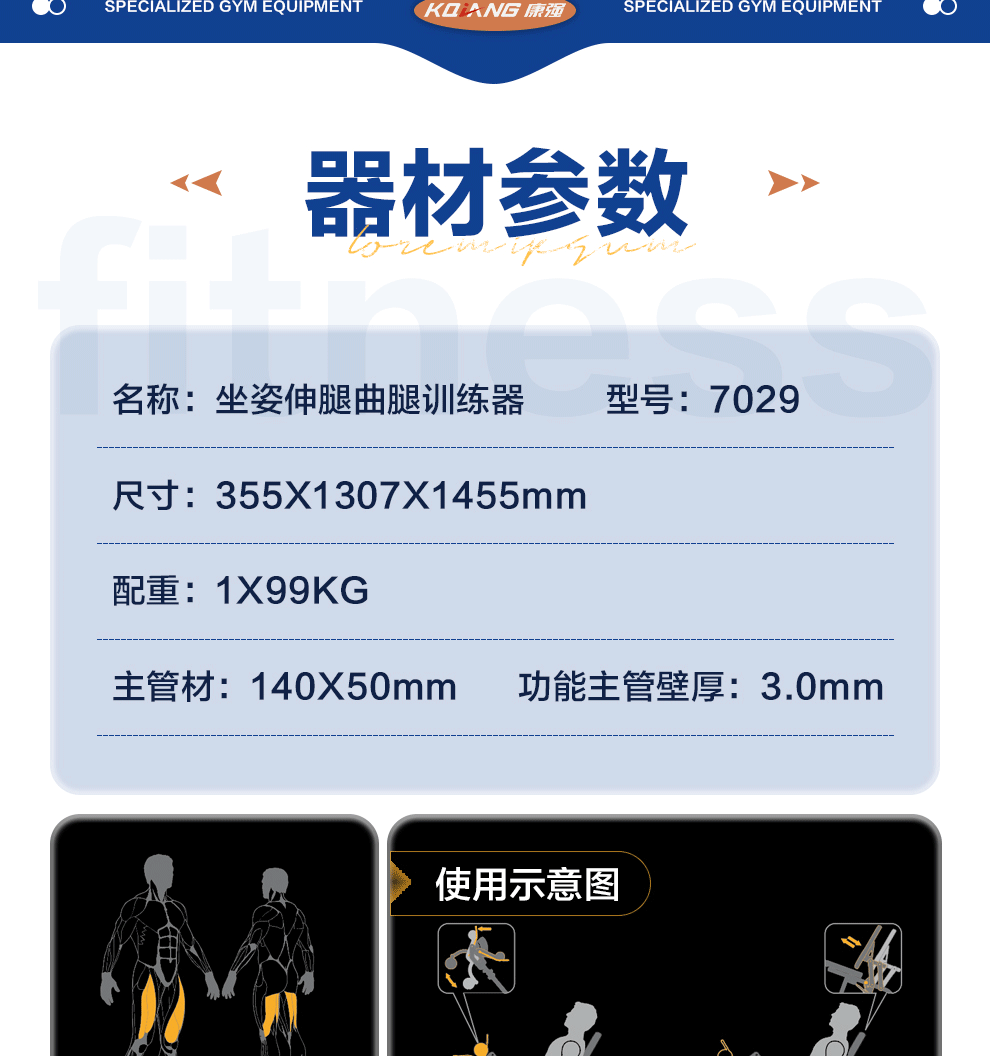 | 型号 | 坐姿伸腿曲腿训练器7029 | ||